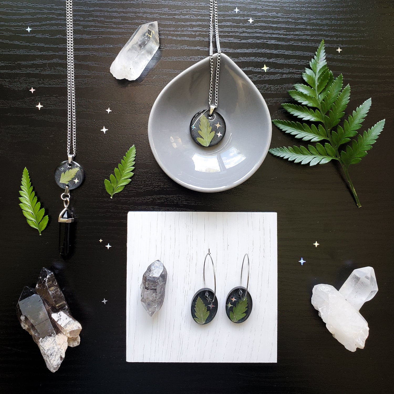 This collection showcases jewelry and art pieces that utilize fern leaves as...